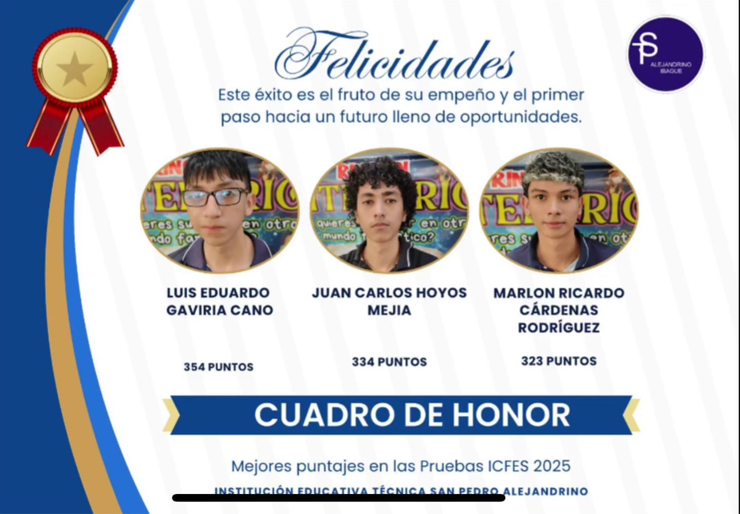 Tenemos estudiantes con alto rendimiento, el cual reflejan la educacion que presta el colegio.